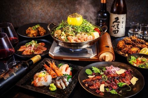 Let's start with a toast with some small dishes and some drinks! Choose from three types of hot pot: seared offal soy sauce hot pot, seared offal delicious salt hot pot, or Kyoto style! Whole yuzu chicken hot pot. Finish with rice porridge or champon. *Contents may change depending on the season and what is available.Please feel free to ask us for recommendations on the day.